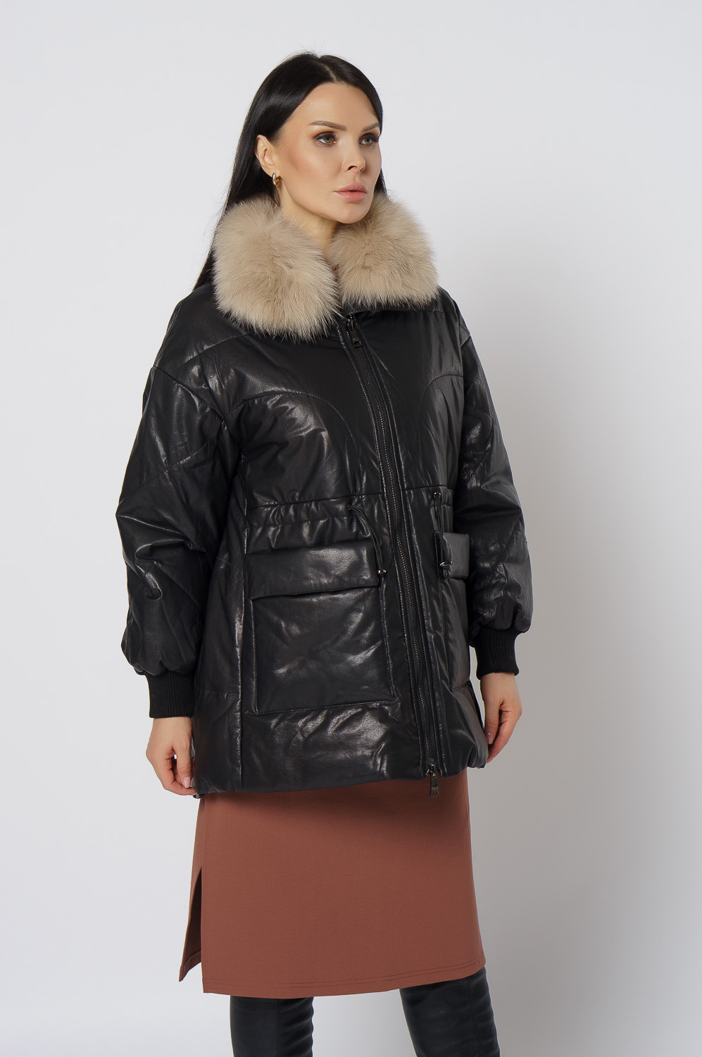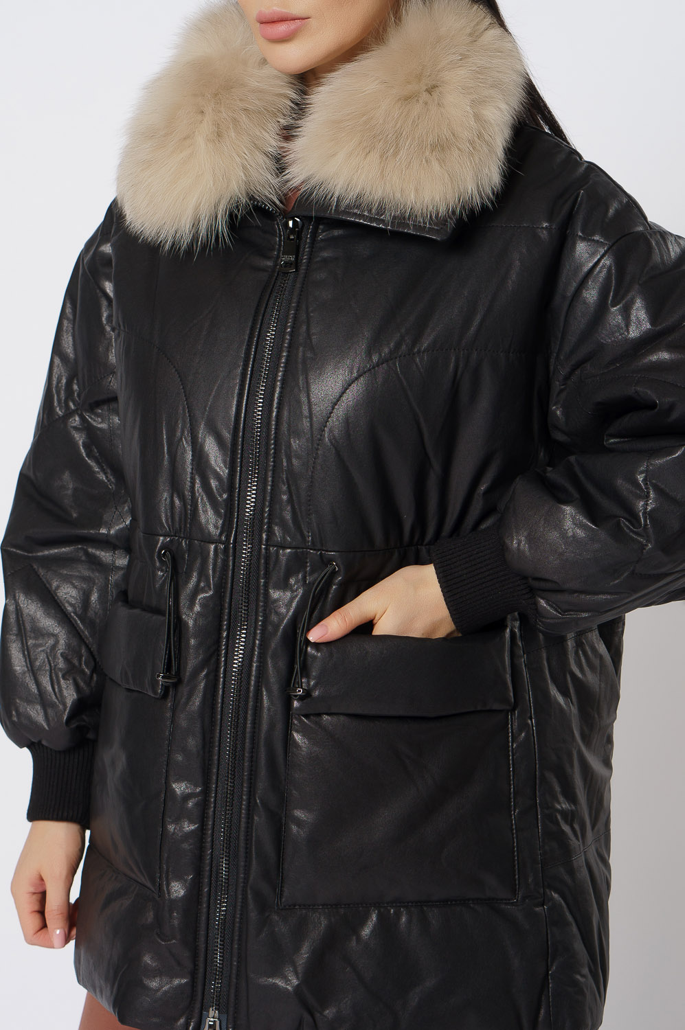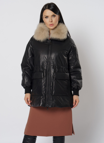 Утепленная кожаная куртка с песцом