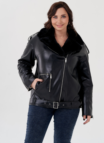 Куртка-косуха из эко кожи на утеплителе с натуральным мутоном (чёрный)