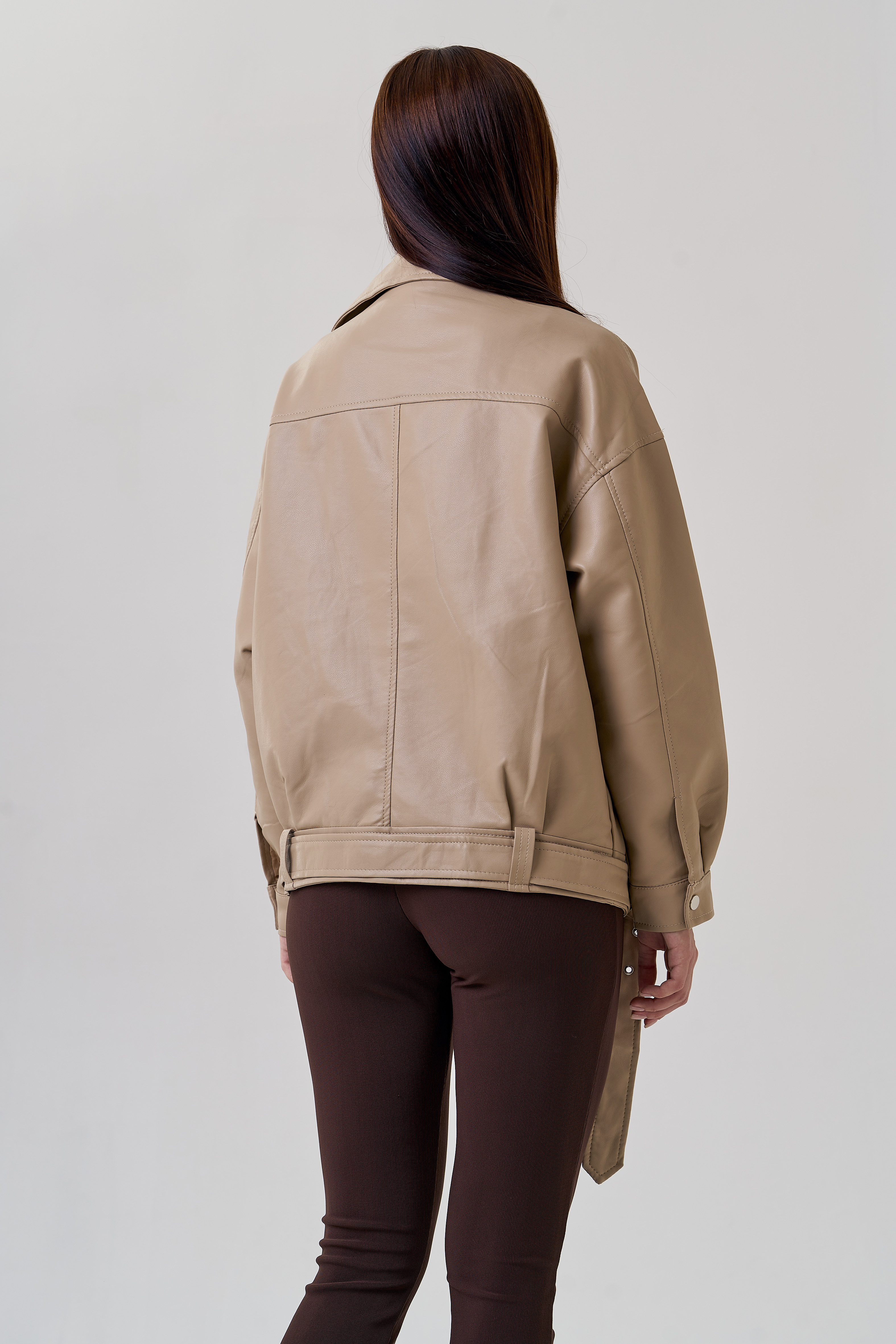 Бежевая куртка в стиле оверсайз точно попадет вам в сердце! Светло-бежевый цвет позволит подбирать к куртке разные образы. Материал эко кожи устойчив к холодам и повреждениям. Модель застегивается на молнию и кнопки. Имеется ремень и карманы на молнии. Рукава с манжетами на кнопках. Фасон оверсайз и спущенные плечи добавят комфорт.